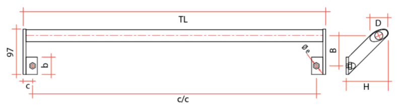 | Kods | D | B | H | c/c | TL | a | b | c | e |