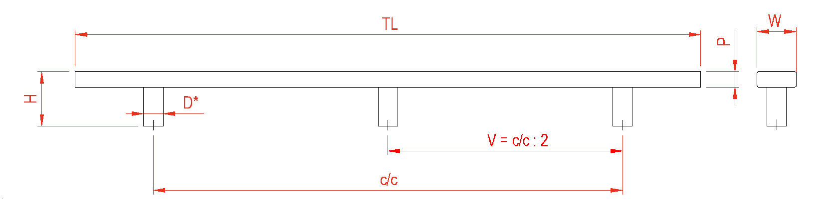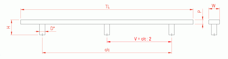 Pasūtījumi ir iespējami ar pielāgotu c/c, V un TL mm specifikāciju.