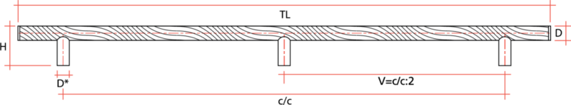 Pasūtījumi ir iespējami ar pielāgotu c/c, V un TL mm specifikāciju.