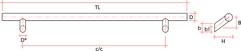 | Kods | D | D* | B | H | c/c | TL | b | b1 |